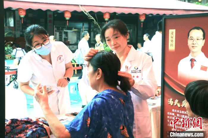 图为志愿服务总队专家正在为居民义诊。陈媛 摄