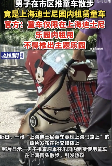 上海迪士尼回应童车被推到市区马路:童车仅限在上海迪士尼乐园内租用