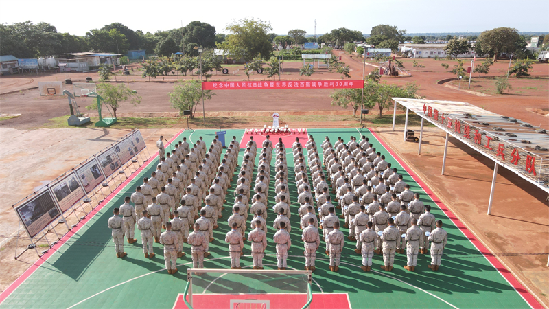 中国赴南苏丹(瓦乌)维和工兵分队举行中国人民抗日战争暨世界反法西斯战争胜利80周年纪念活动