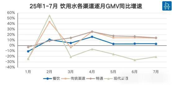 2025年上半年,饮用水市场的渠道格局发生了显著变化,传统渠道与现代渠道表现分化,特通渠道和主流折扣店成为拉动增长的新引擎。