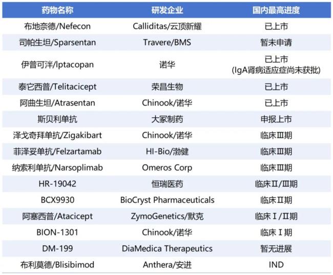 全球及国内IgA肾病管线(部分)