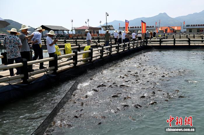 9月14日,“把闽东之光传播开去”——海外华文媒体宁德行活动走进福建宁德,领略闽东的锦绣河山,感知闽东的灿烂文化,此次活动共有12国16家海外华文媒体代表前来参访。图为海外华文媒体代表参观蕉城区三都澳白基湾渔排养殖区,了解大黄鱼产业发展情况。中新社记者 吕明 摄