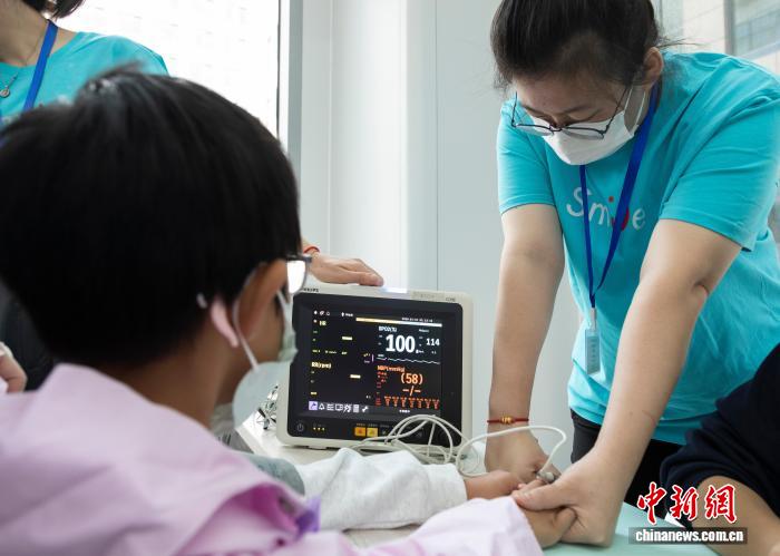 图为工作人员为患儿拍照。中新社记者 杨迪 摄