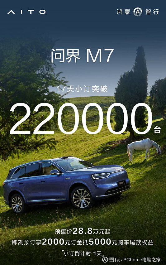 新问界M7小订超22万台 市场热度高涨