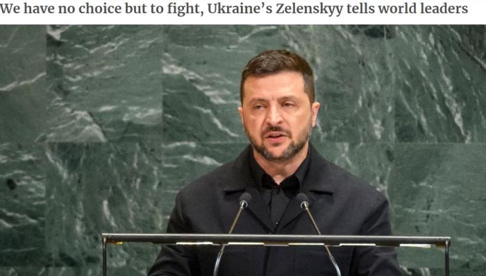 据联合国官网发布的画面,泽连斯基演讲时换下了往常的套头衫,选择了更正式的黑色服装。
