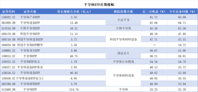这一涨幅远超市场预期,也进一步刺激了本就一路高涨的芯片ETF和半导体ETF相关标的。