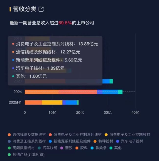 从收入结构来看,2025年上半年,消费电子及工业控制线材、通信线缆及数据线材两块业务规模大但增速低,高频高速铜缆连接线、新能源系列线缆及组件、汽车线缆三块业务,收入规模不大但增速很高,都在80%以上。