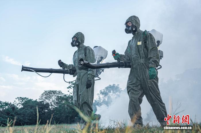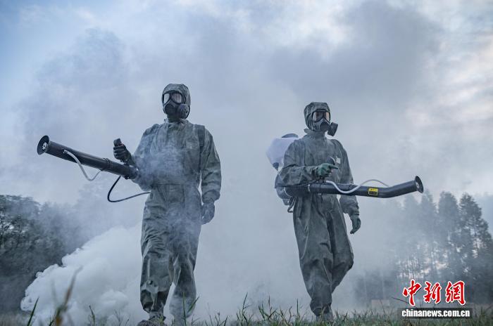 图为防化分队官兵正在深入“染毒”地带进行洗消。刘思远 摄