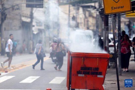 10月28日,巴西警方在里约热内卢展开针对黑帮“红色司令部”的大规模剿匪行动,军警在街头维持秩序。新华社/巴西通讯社