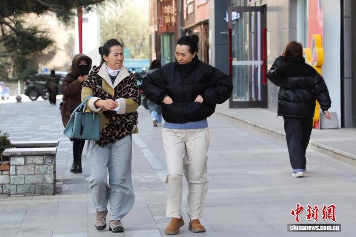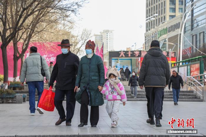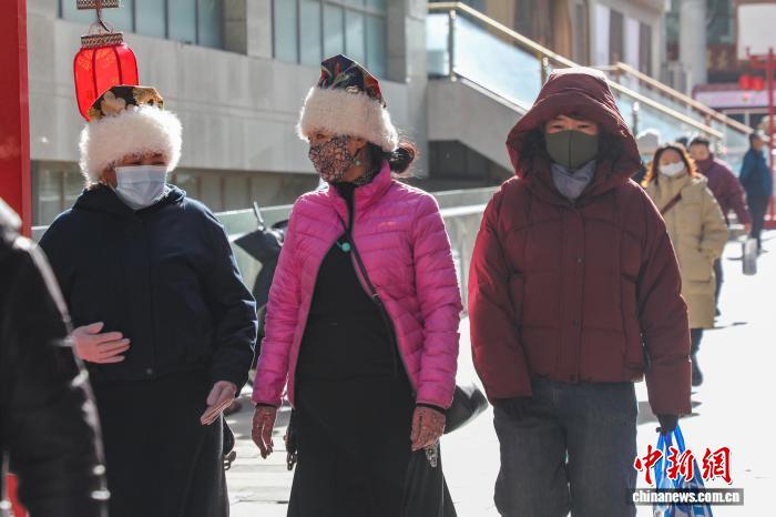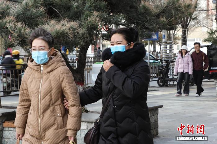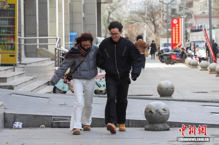 11月26日,青海西宁,市民顶风出行。中新社记者 马铭言 摄
