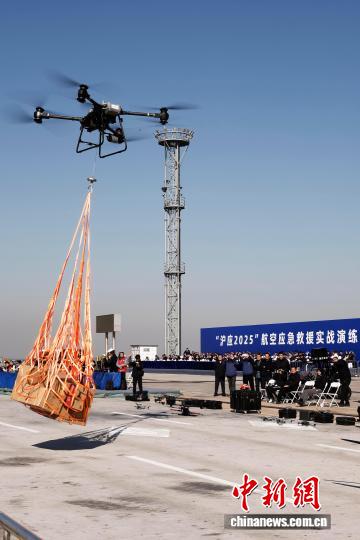 图为运载无人机为孤岛受困人员投送物资装备。中新社记者 殷立勤 摄