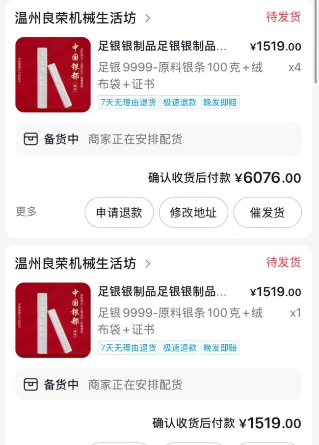 花3.68万网购2400克银条商家拒绝发货 金银涨价引发争议