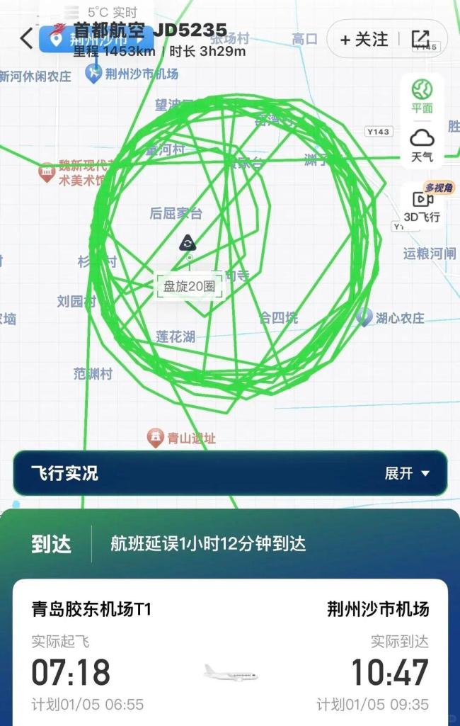 1月5日,有乘客反映首都航空JD5235航班在空中盘旋了近20圈,引发了网友的热议。一些网友表示,飞机在空中盘旋是常见现象,但转这么多圈却比较少见。还有人关心机上乘客是否感到不适。