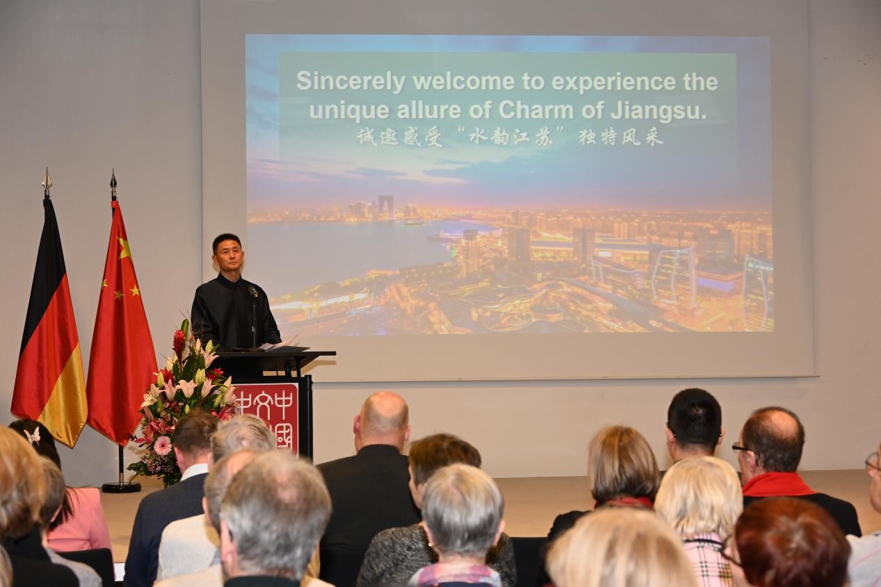 江苏省文化和旅游厅副厅长李川作江苏文旅专题推介。柏林中国文化中心供图