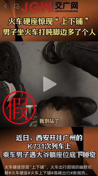 网传西安至广州东K731次列车硬座下躺人信息不实