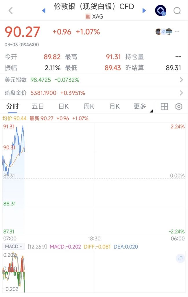 截至发稿,白银现货站稳90美元关口。
