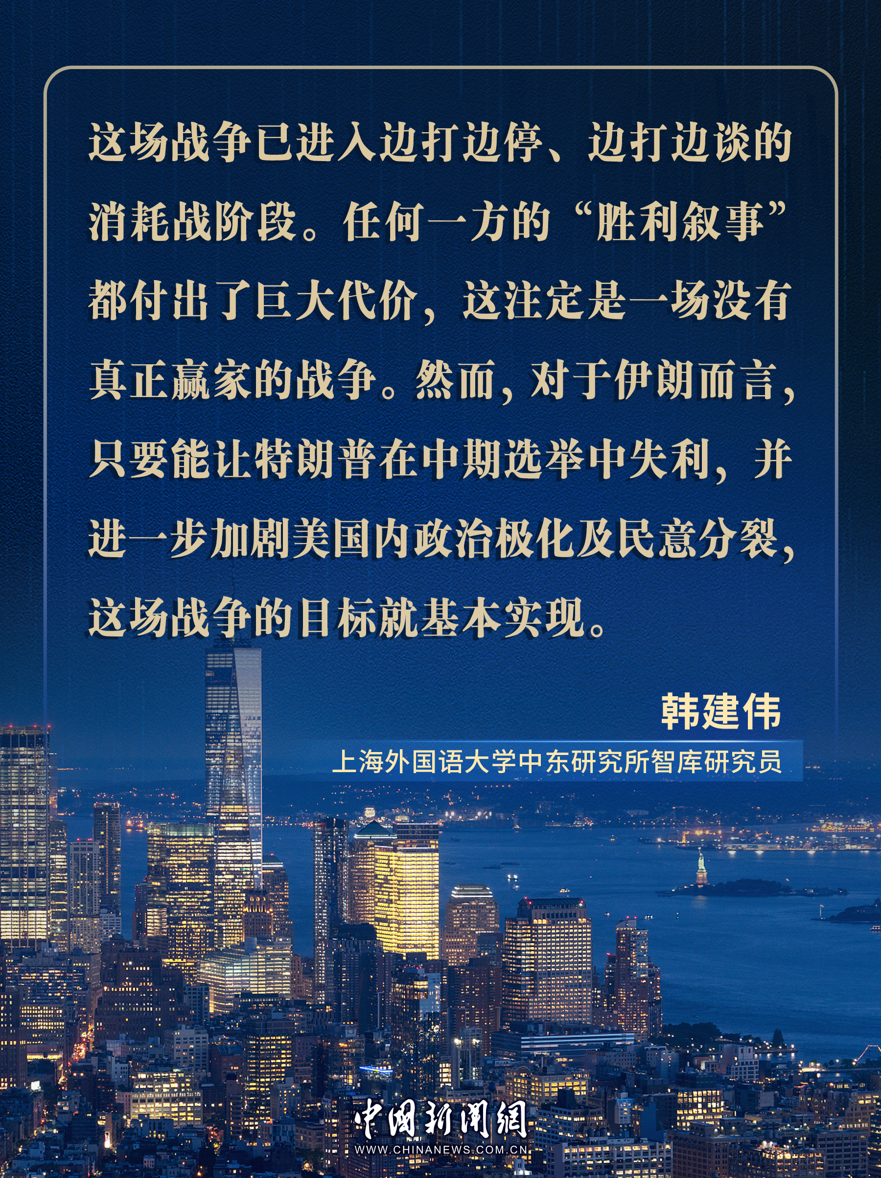 针对美伊临时停火的现实困境与未来前景,上海外国语大学中东研究所智库研究员韩建伟进行了深入分析。她指出,此次临时停火是在美以与伊朗之间的结构性矛盾未得到有效解决的情况下发生的,脆弱性十足且充满欺骗性。她认为,这场战争“已进入边打边停、边打边谈的消耗战阶段”。