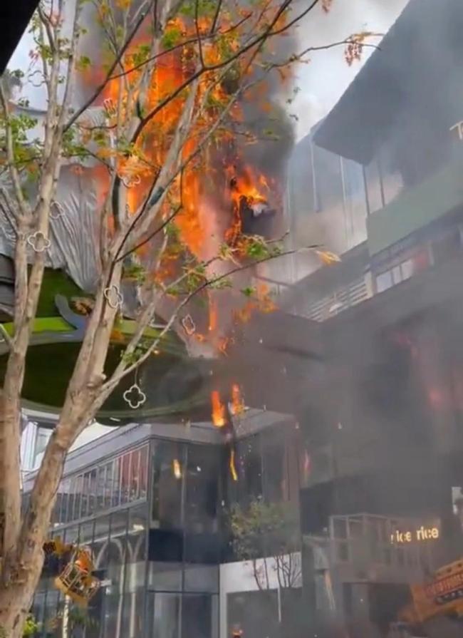 4月15日上午,有网友发布视频称苏州万象天地一处高处露天走廊上的绿色装饰物发生火情。视频显示现场浓烟滚滚、火势较大,大量火星溅到地面。网友表示有消防车到达现场。