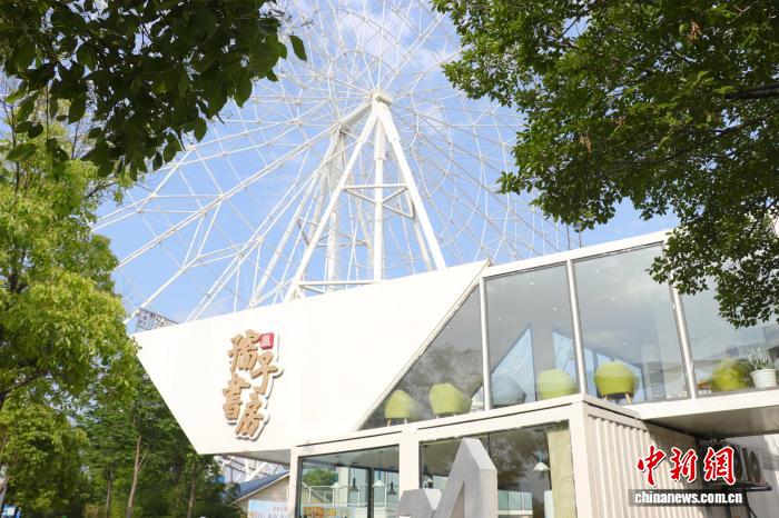 图为江西省南昌市红谷滩区孺子书房摩天轮分馆,旁边就是“南昌之星”摩天轮,该分馆建筑整体为上下两层带露台的集装箱式结构,外观独特。熊锦阳 摄