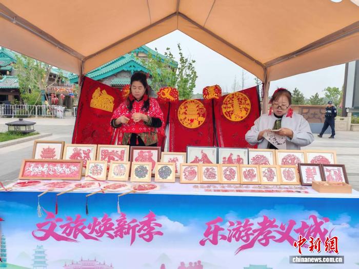 非遗代表性传承人现场展示孝义剪纸。高雨晴 摄