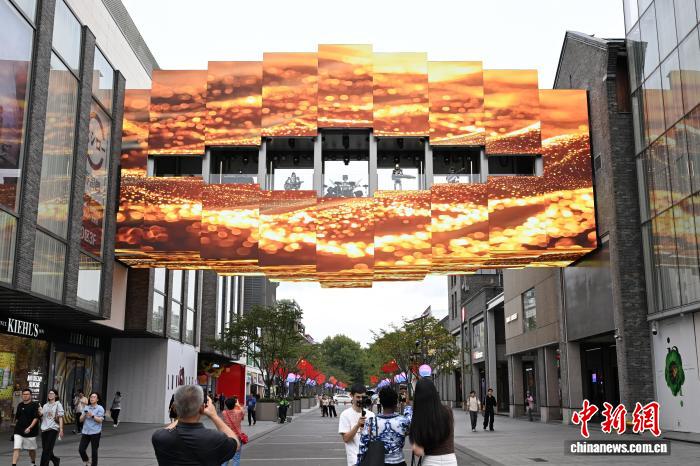 中新网杭州9月25日电 (赵晔娇 钱晨菲 李凌婧)湖滨步行街上,西子廊桥的机器人乐队与街上国风宋韵乐器联动奏响,科技音乐秀跨越古今;“西子魔盒”黑科技满满,吸引市民游客驻足体验……一幅数智与时尚消费深度融合的