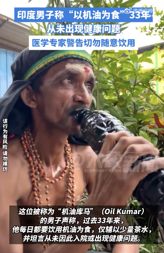 印度男子称每天喝机油连喝33年 医学专家警告勿模仿详情