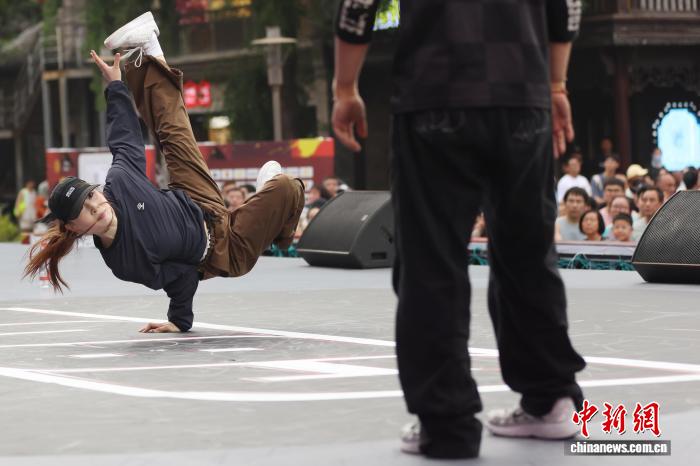9月14日,2025年中国街舞联赛(南京站)圆满收官,来自全国各地的近400名舞者轮番登台,舞动青春。最终,历经资格赛、循环赛、淘汰赛的层层筛选,王羽凡获得女子公开组冠军,李后桦获得男子公开组冠军。图为选手在舞台
