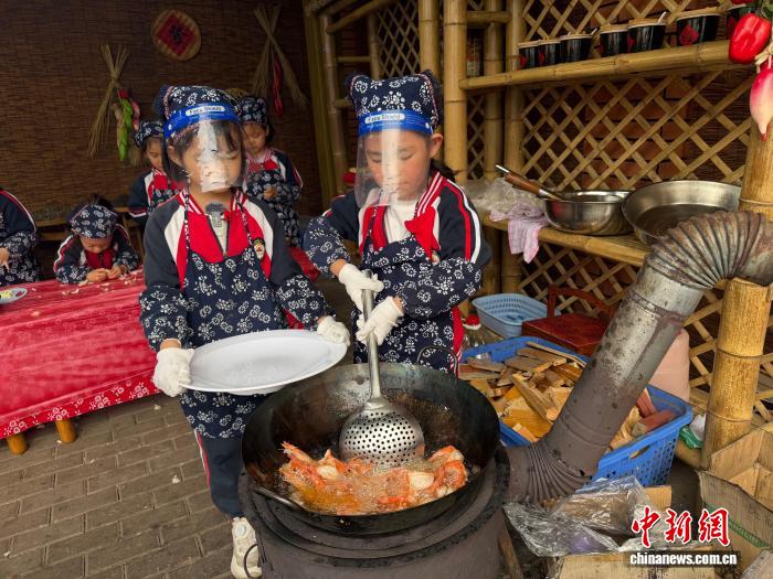 中新网成都4月24日电 (记者 何浠)切配、搅拌、摆盘、蒸煮……在成都启航第二幼稚园和新都兴乐路小学的校园里,一群“小厨神”正围着灶台忙得热火朝天。从幼儿园到小学,干锅虾、麻婆豆腐、回锅肉等一道道承载着巴蜀文