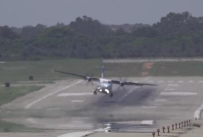 机场飞机遇强风 机翼狂甩险砸地 惊险画面曝光详情