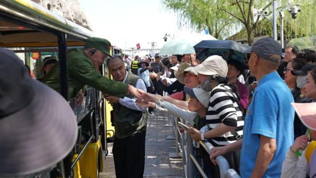 河南省洛阳市的龙门石窟是世界文化遗产及国家5A级旅游景区,景区日常禁止车辆进入,只有急救和应急车辆例外。近日正值洛阳牡丹花会游客高峰期,龙门石窟研究院破例允许几辆车进入景区核心区域,车上坐着28名平均年龄90多岁的抗美援朝老兵