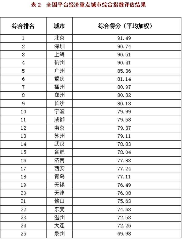 报告:北京、上海等四城构成平台经济“超强阵营”详情
